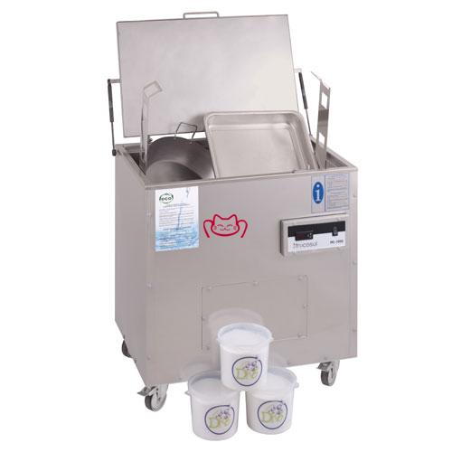 特征: 這是一臺(tái)增加衛(wèi)生、消毒和去除細(xì)菌的脫脂機(jī)器;機(jī)器可通過恒溫器控制溫度,清除廚房和烘焙工具(過濾器,托盤,煎鍋,鍋等)中的油脂和臟物。它將在一個(gè)月內(nèi)保持相同的清潔度。 您只需要在水箱中注入水到指定水位,添加洗滌劑,關(guān)閉水箱,開機(jī)將水加熱到75攝氏度,然后放入需要清潔的物品后蓋好蓋子,讓機(jī)器工作即可。 隨機(jī)贈(zèng)送一包5KG 的DK6清潔去污粉末。