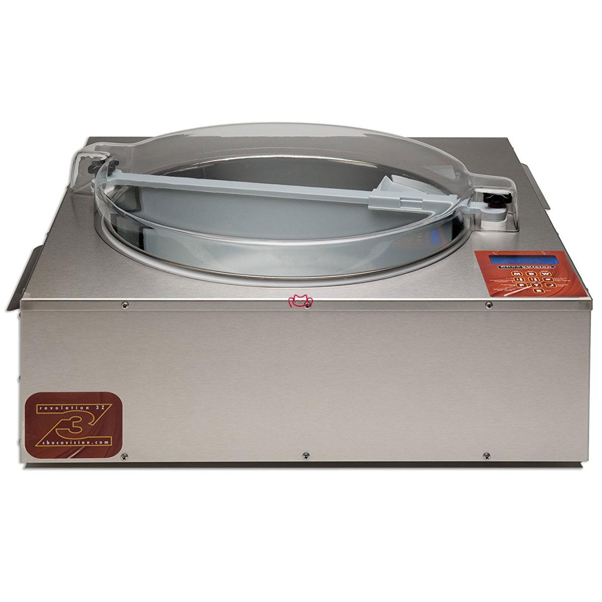 A lot like the popular Chocovision Delta but larger, the Revolation 3Z can produce 30 lbs of perfectly tempered chocolate at a time. At that rate, your facility can generate 200–1,000 lbs of chocolate per day, with the efficient yet simple controls. The 3Z's user-friendly display screen makes monitoring and controlling your chocolate simple. As with other Chocovision machines, this unit uses forced hot air as its heat source. No light bulbs, no hot water baths. Product Features: