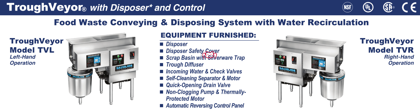 -TroughVeyor®- Model TVL or TVR將水槽中的水循環(huán)供多名操作員使用,顯著提高整體垃圾處理效率。 適用于 3 或 5 馬力的垃圾處理器