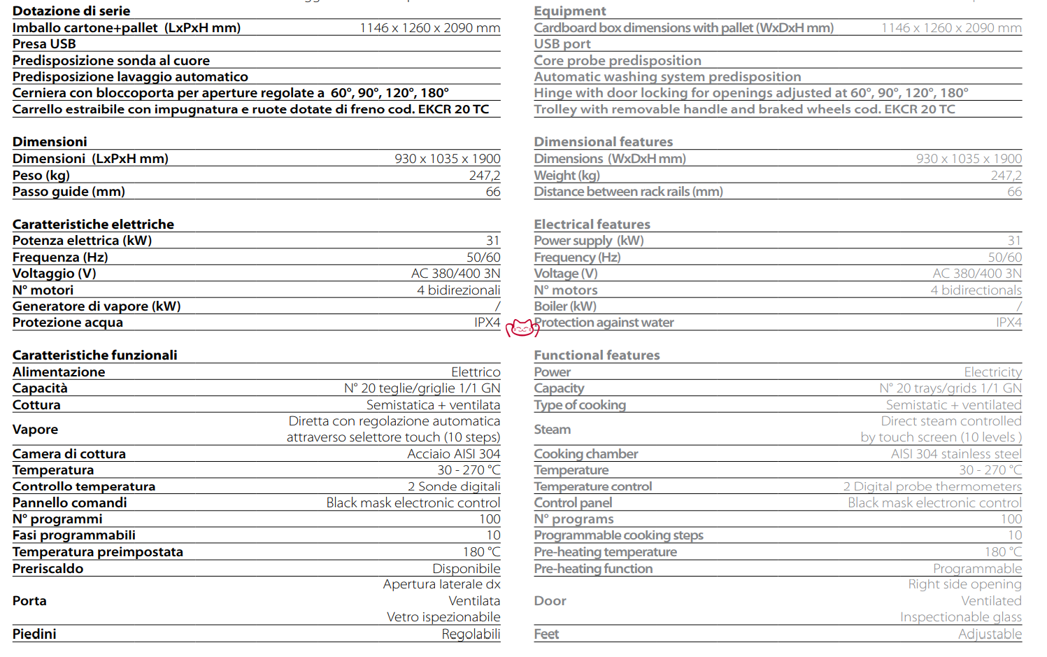 意大利EKA MKF2011BM二十層萬能蒸烤箱(觸板電子控制+自動(dòng)清洗)