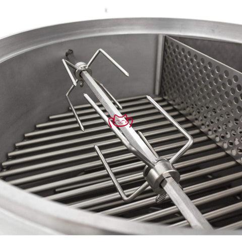 (3)Blaze 20" Kamado Rotisserie with Charcoal Basket添加烤肉架套件可讓您擴(kuò)展燒烤選擇,并在您的 kamado 烤架中烤整只雞、豬里脊肉、烤牛肉等。 與單獨(dú)出售的后部木炭籃一起使用時(shí),您可以使用間接后部紅外線加熱烹飪食物,從而使食物保留更多的自然風(fēng)味。 防水 120V 電機(jī)封裝在不銹鋼外殼中,以承受戶外元素。