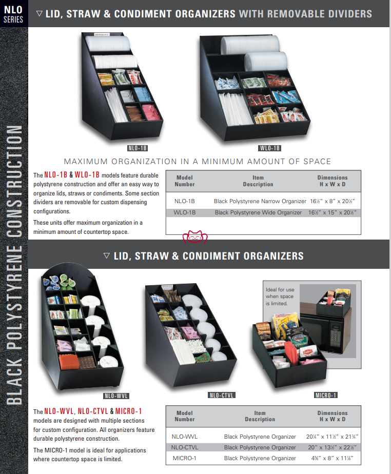 特征: DLCO-5BT多功能組織者提供了一種簡(jiǎn)便的方法來(lái)組織杯子,蓋子和包裝調(diào)味品。 這六個(gè)部分的組織者提供了一個(gè)緊湊的足跡,可最大化空間。 具有耐用的聚苯乙烯結(jié)構(gòu)。