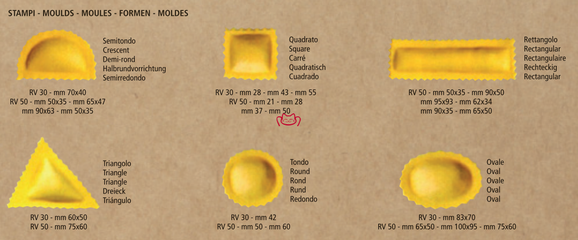 特征:用于生產各種形狀和大小的餛飩和面疙瘩的機器。 堅固、安全和可靠,它們特別適用于面食制造商、面包店、熟食店、超市和大型團體餐飲。 雙面餛飩機 RV 30 - RV 50