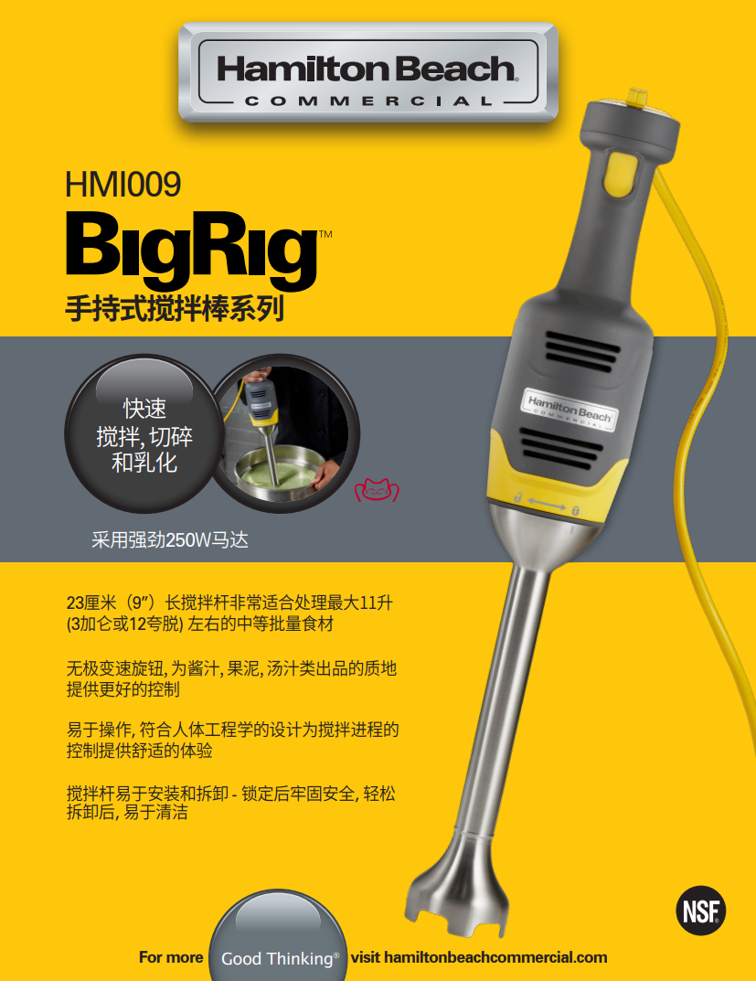 美國(guó)漢美馳HAMILTON BEACH HMI009-CN BigRig 9" 手持?jǐn)嚢铏C(jī)