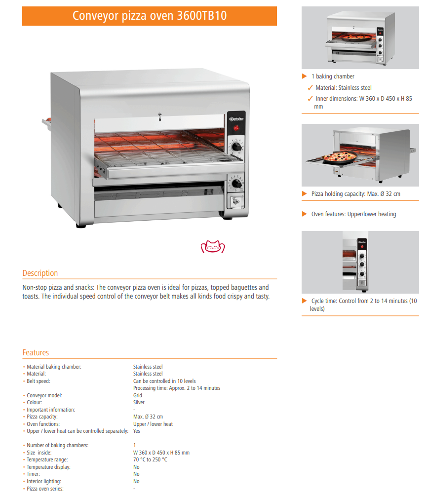 德國BARTSCHER 3600TB10履帶式披薩烤爐,以精準控溫與高效傳送技術(shù),打造持續(xù)穩(wěn)定的高品質(zhì)披薩與烘焙美食。憑借寬敞內(nèi)部空間和十級轉(zhuǎn)速調(diào)控,滿足快節(jié)奏餐飲環(huán)境對口感與產(chǎn)能的雙重需求。它專為中大型餐廳、披薩連鎖及高端快餐廚房設(shè)計,是高效廚房運營的理想利器。