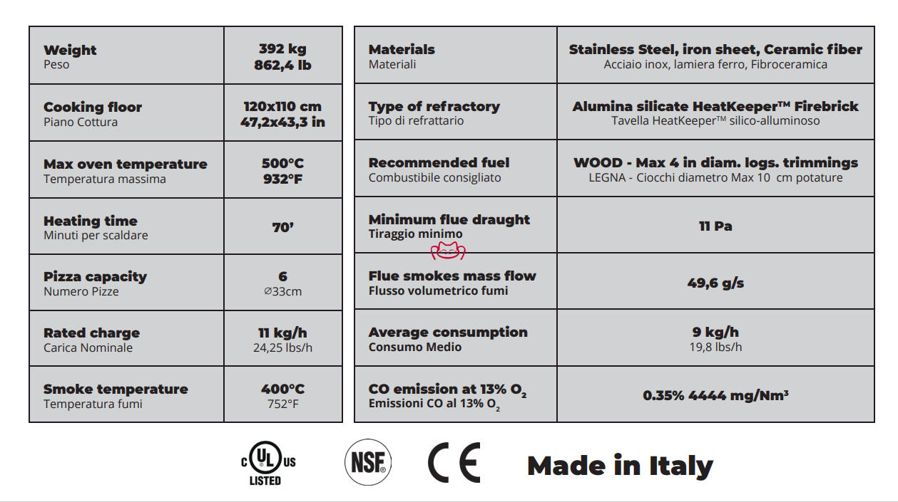 -烤箱的大口徑和寬闊的窗臺由不銹鋼和熔巖石制成,旨在使披薩的處理更加容易,同時又不會降低工作溫度,方便披薩制作者的工作。