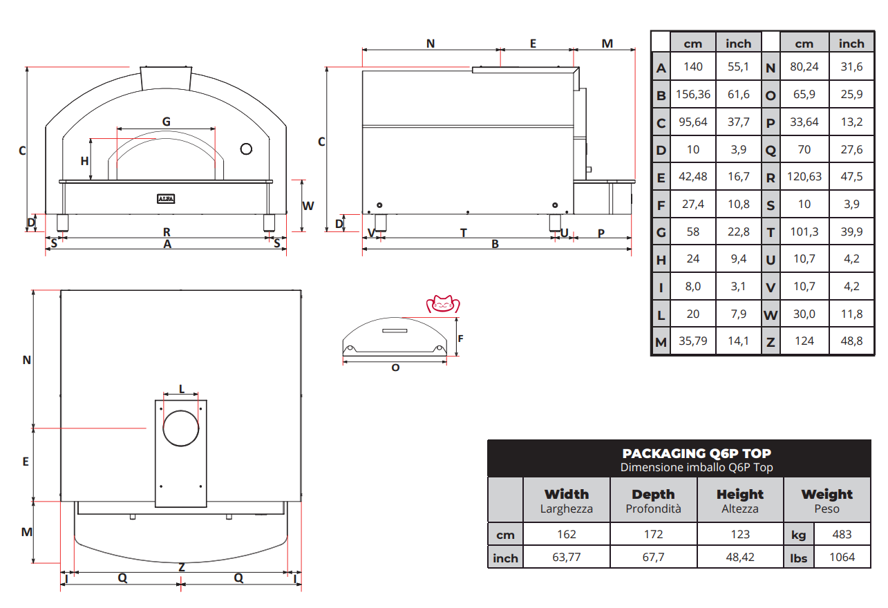 -與所有 Alfa 烤箱一樣,Quick 6 Pizze 不需要任何砌筑工作,可立即使用,并且安裝極其簡單,即使在內(nèi)置模式下,只要您留出足夠的維護空間即可。