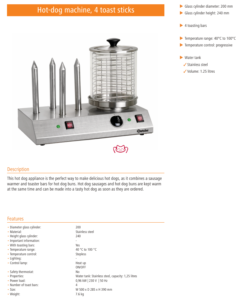 特征: 這款熱狗機是制作美味熱狗的完美方式,因為它結(jié)合了香腸加熱器和熱狗面包烤架。熱狗香腸和熱狗面包同時保溫,訂購后即可制作成美味的熱狗。