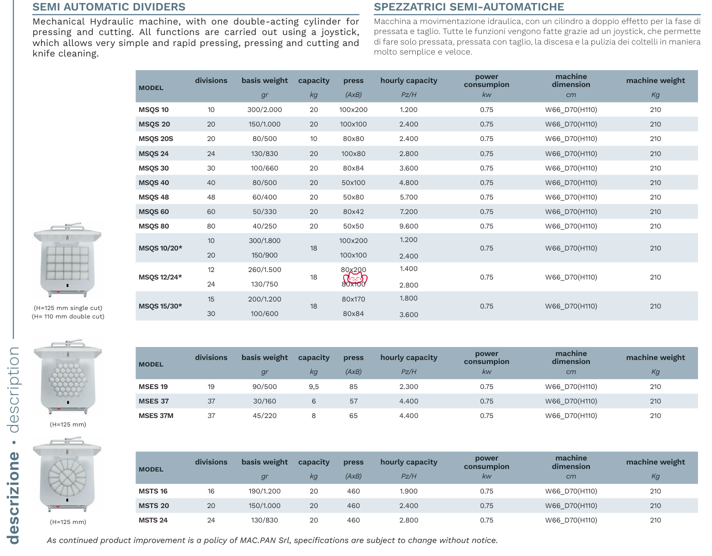意大利MAC.PAN MSQS10半自動方形面團(tuán)分塊機(jī)