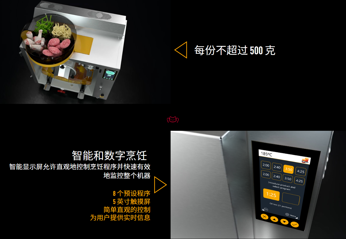 其核心技術(shù)是封閉式垂直油炸模塊與ECOFRY系統(tǒng),在近乎無(wú)氧、無(wú)光環(huán)境下炸制食品,不僅保持油溫穩(wěn)定,出品品質(zhì)高,還能節(jié)能24%、節(jié)油37%。相比傳統(tǒng)炸爐,它真正意義上實(shí)現(xiàn)了節(jié)能減排、自動(dòng)出品、安全作業(yè)三者兼顧。