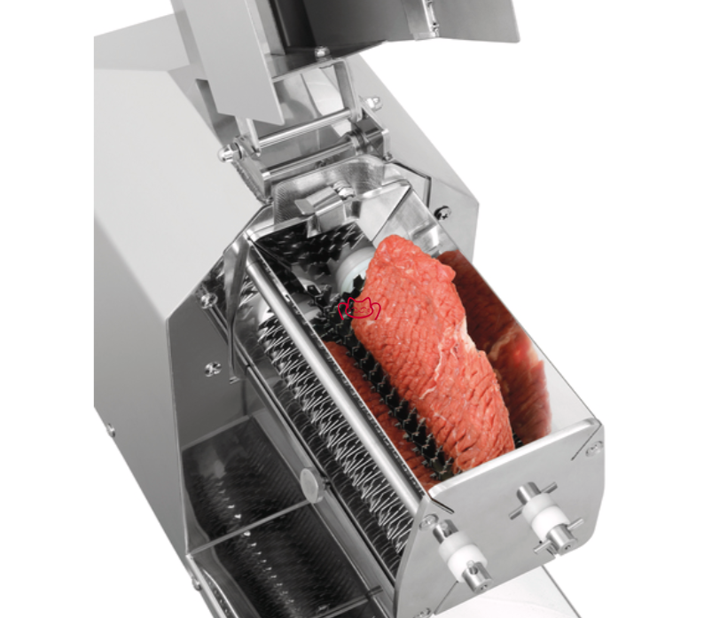 答:機(jī)械嫩化的原理是通過(guò)薄而密的紋理/穿刺改善肌理、斷開筋膜,使肉更易入味而不是“破壞肉片結(jié)構(gòu)”。合適的送入量與操作方法(參見隨機(jī)的操作手冊(cè))可以保證肉片完整、厚度一致,適用于牛排、豬排、雞排等多種切割方式。A370254 的填充軸尺寸(190×25 mm)與可調(diào)送入方式,能控制處理強(qiáng)度。