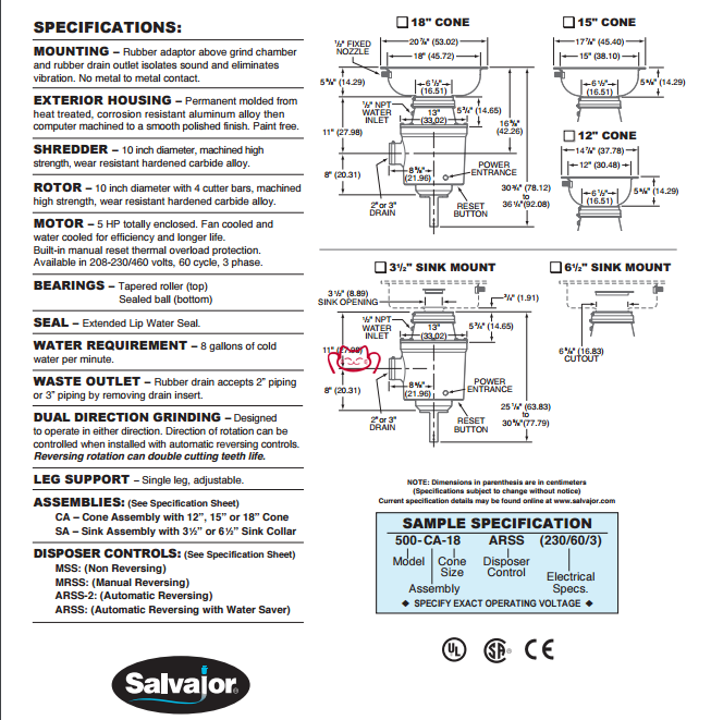 美國(guó)SALVAJOR 500#商用垃圾處理器