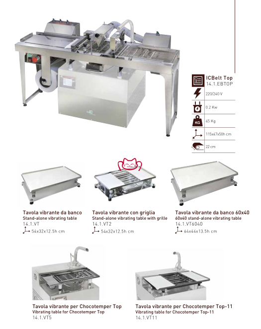 調(diào)溫機 Chocotemper Top 可選配用于巧克力模具的振動臺式工作臺。