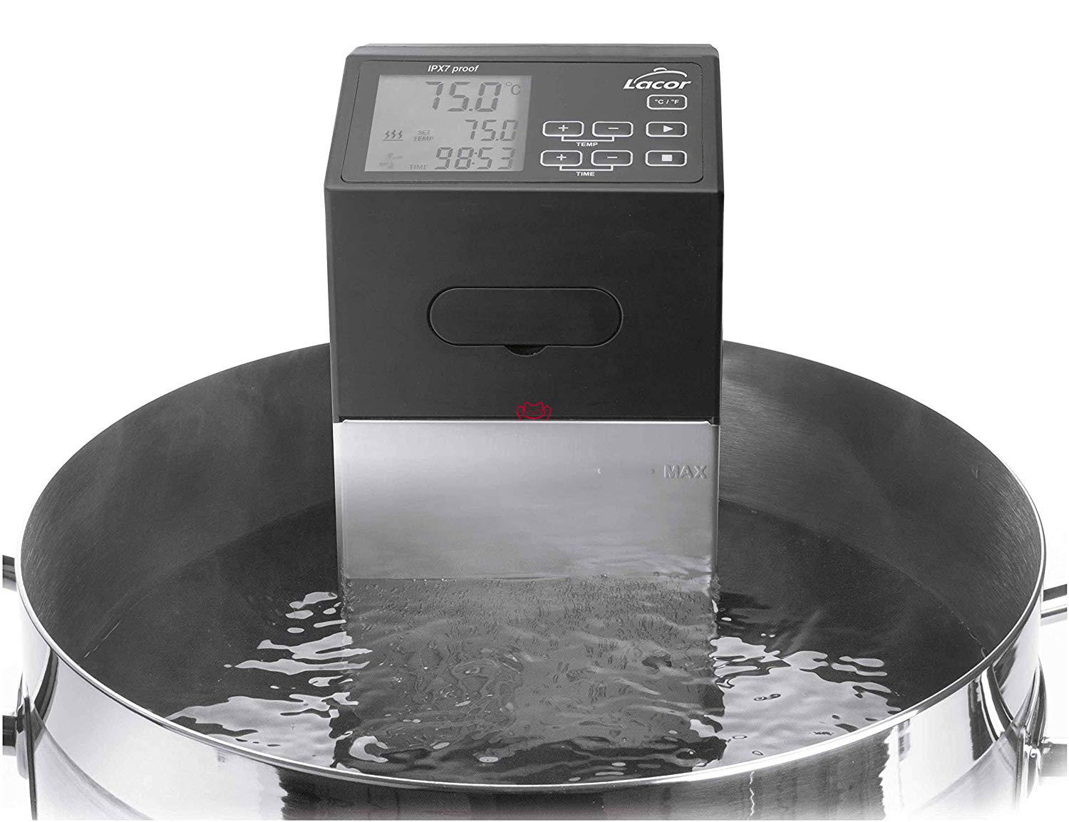 -它有一個浸入式恒溫器,可以連接到任何類型的鍋、桶或鍋上,最多可容納 30 升水。得益于每分鐘可輸送 6 升水的水泵,我們可以在整個食物中實(shí)現(xiàn)均勻且線性的烹飪。